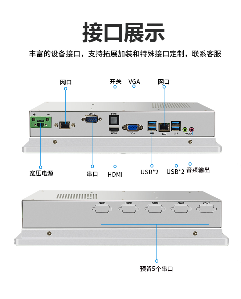 ■ 标配双网2串4USB,接口可灵活定制