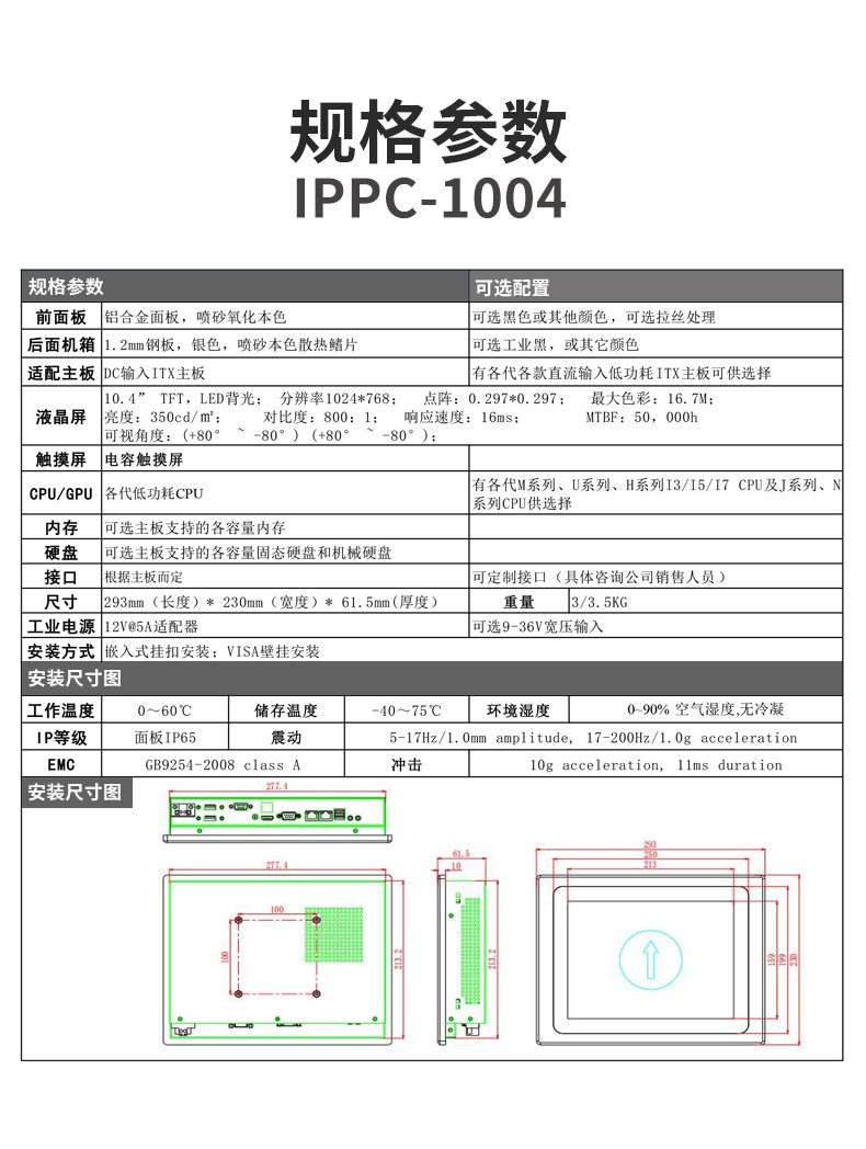 10.4寸电容触摸工业平板电脑,可选各代ITX主板,配置灵活,接口可定制